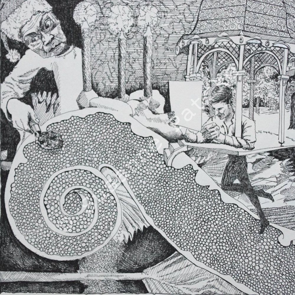 Es handelt sich bei diesen Zeichnungen um keine Illustration des jeweiligen Romans, sondern ausschließlich um eine Interpretation des ausgewählten Satzes: